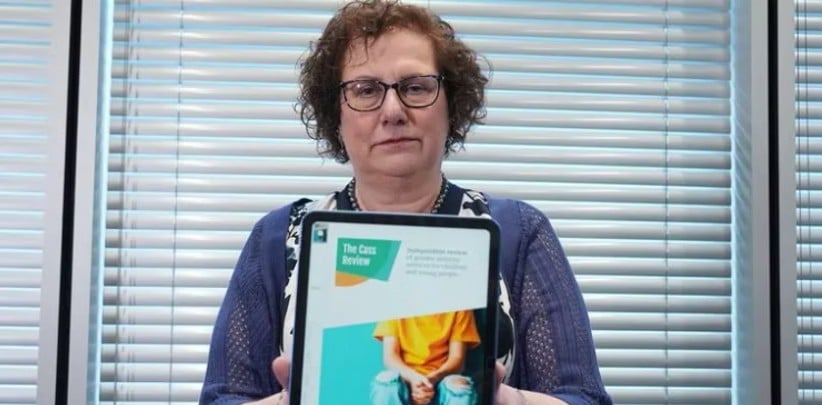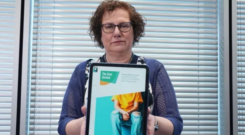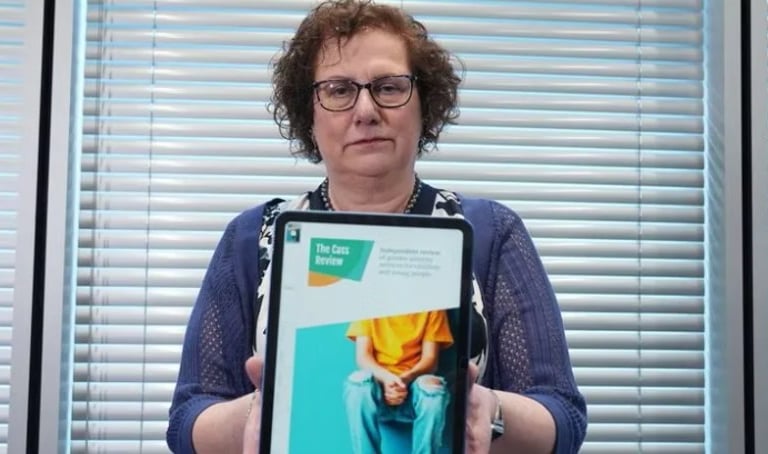 Dr Hilary Cass with a digital PDF of The Cass Review