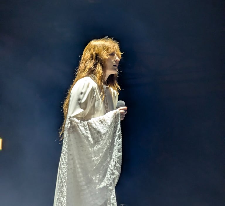 “Whatever you’ve been through, whatever you’re going through, know that I’m here with you, and hopefully we can make it through this show together,” Welch joked, before launching back into the triumphant chorus of ‘Shake It Out’. She performed with raw honesty, her soft speech and genuine awe at the crowd’s reception a striking contrast to her powerhouse vocals and theatrical performance.